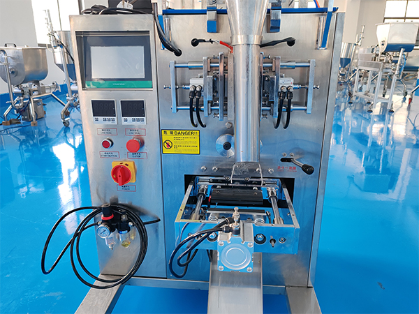 1、自動化程度:立式醬料包裝機能夠實現從制袋、計量、充填、封合、分切到計數的全程自動化生產,采用PLC控制器執行操作,過程穩定、快捷、高速。