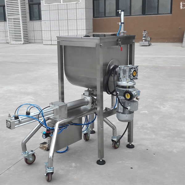 星火機械設計研發(fā)的半自動醬料灌裝機是一款廣泛適用于食品、化工、醫(yī)藥等行業(yè),特別實用于調味品種帶顆粒并且濃度較大的辣椒醬、豆瓣醬、花生醬、芝麻醬、果醬、牛油火鍋底料,紅油火鍋底料等粘稠醬類的灌裝的小型醬料灌裝設備。設備機型設計合理,機型小巧,操作方便,物料接觸部分均采用304不銹鋼材料制成,灌裝量調節(jié)手柄、灌裝速度可任意調節(jié),灌裝精度高。灌裝悶頭采用防滴漏、防拉絲及升降灌裝裝置。料斗帶有可調速攪拌裝置,使物料更均勻灌裝。臥式攪拌結構,保證了醬和油的充分混合,大大提高灌裝性能和計量的精度、